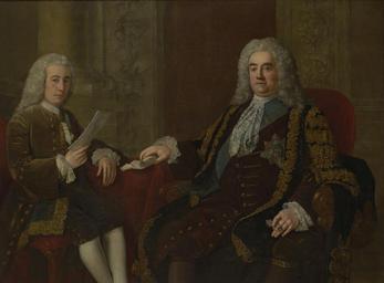 | Keywords: Robert Walpole, 1st Earl of Orford with Henry Bilson-Legge, by Stephen Slaughter.jpg Artwork creator Stephen Slaughter Portrait of male w Robert Walpole 1st Earl of Orford m GB Prime Minister 1676-1745 and w Henry Bilson Legge before 1745 oil on canvas cm 135 181 Institution Government Art Collection Cabinet Office 70 Whitehall London object history ProvenanceEvent 1953 purchase the Ministry of Works Miss Lucy Walpole Strawberry Cottage Woodford exhibition history credit line accession number 2511 http //www gac culture gov uk/work aspx obj 23433 object page other versions PD-old-100-1923 DEFAULTSORT Slaughter; Walpole Robert Stephen Slaughter 18th-century portrait paintings in the Government Art Collection Robert Walpole Henry Bilson Legge Black and gold ceremonial robes of the United Kingdom in portraits Double portrait paintings 18th-century cabinet portraits 18th-century oil portraits of sitting men at three-quarter length in ceremonial robes 18th-century portrait paintings of men with allonge wigs Insignia of the Order of the Garter in portraits Lace jabots in art Portrait paintings of men sitting in armchairs Portrait paintings of men with glasses Paper sheets in portrait paintings Sash of the Order of the Garter in portraits Star of the Order of the Garter in portraits |