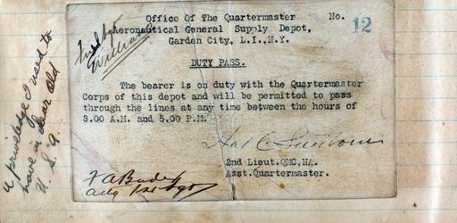 | Keywords: robert williams robertwilliams world war one worldwarone aero squadron aerosquadron text writing plaque texture document Robert Williams (1898 - 1971)received his pilot license while in the Army in WW I, later serving with the 158th Aero Pursuit Squadron in France. After his discharge, Mr. Williams was a test pilot, aerobatic instructor, barnstormer, and flew air mail. He was called-up from the Air Corps Reserve in WW II as a full Colonel. With the end of WW II, Robert Williams resided in Phoenix, AZ until his death. Repository: San Diego Air and Space Museum Archive Robert Williams (1898 - 1971)received his pilot license while in the Army in WW I, later serving with the 158th Aero Pursuit Squadron in France. After his discharge, Mr. Williams was a test pilot, aerobatic instructor, barnstormer, and flew air mail. He was called-up from the Air Corps Reserve in WW II as a full Colonel. With the end of WW II, Robert Williams resided in Phoenix, AZ until his death. Repository: San Diego Air and Space Museum Archive |