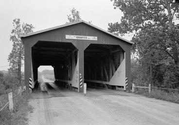 | Keywords: Roberts Covered Bridge.jpg 39 42 41 N 84 37 15 W Northern end of the w Roberts Covered Bridge which spanned Seven Mile Creek three miles south of Eaton Ohio Eaton in Gasper Township Preble County Ohio Gasper Township Preble County Ohio Preble County Ohio United States Built in 1829 this Burr arch truss covered bridge is listed on the National Register of Historic Places Since this picture was taken it has been moved to a park in southwestern Eaton Library of Congress Prints and Photograph Division Historic American Buildings Survey HABS http //hdl loc gov/loc pnp/hhh oh0360 OHIO 68-EATO V 1-3 hhh oh0360 1971-09 Creator Jack Boucher OH-2229-3 Jack Boucher Roberts Covered Bridge Other people's pictures by User Nyttend |