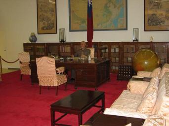 | Keywords: ROC-CKSMH The Memorial Office of President Chiang 20050529.jpg The Memorial Office of President Chiang è”£ä¸æ£ç´ 念辦公室 is replica of Chiang Kai-shek's Presidential Office at the Chiang Kai-shek Memorial Hall Photo taken on 2005 05 29 by User Jiang in Taipei City Republic of China 2005-05-28 own assumed Jiang Rooms in Chiang Kai-shek Memorial Hall | ||||