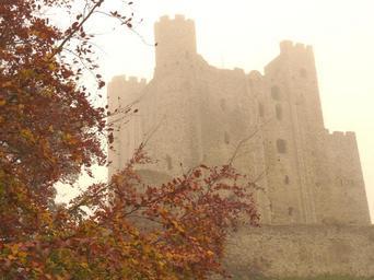 | Keywords: outdoor Rochester Castle stands on the east bank of the River Medway in Rochester, Kent, South East England. The 12th-century keep or stone tower, which is the castle's most prominent feature, is one of the best preserved in England or France. Situated on the River Medway and Watling Street, Rochester served as a strategically important royal castle. During the late medieval period it helped protect England's south-east coast from invasion. The first castle at Rochester was founded in the aftermath of the Norman Conquest. It was given to Bishop Odo, probably by his half-brother William the Conqueror. During the Rebellion of 1088 over the succession to the English throne , Odo supported Robert Curthose, the Conqueror's eldest son, against William Rufus. It was during this conflict that the castle first saw military action; the city and castle were besieged after Odo made Rochester a headquarters for the rebellion. After the garrison capitulated, this first castle was abandoned. Between 1087 and 1089, Rufus asked Gundulf, Bishop of Rochester, to build a new stone castle at Rochester. He established the current extent of the castle. Though much altered through the centuries, some parts of Gundulf's work survive. In 1127 King Henry I granted the castle to the Bishops of Canterbury in perpetuity. William de Corbeil built the massive keep that still dominates the castle today. Throughout the 12th century the castle remained in the custody of the archbishops. During the First Barons' War (1215–1217) in King John's reign, baronial forces captured the castle from Archbishop Stephen Langton and held it against the king, who then besieged it. The Barnwell chronicler remarked "Our age has not known a siege so hard pressed nor so strongly resisted". After resisting for just over seven weeks, the garrison surrendered. Although the castle had been greatly damaged, with breaches in the outer walls and one corner of the keep collapsed, it was hunger that eventually forced the defenders' hand. The castle did not stay under John's control for long: in 1216 it was captured by the French Prince Louis, who was the new leader of the baronial faction. John died and was succeeded by his son King Henry III in 1216; the next year, the war ended and the castle was taken under direct royal control. Rochester was besieged for the third time in 1264 during the Second Barons' War (1264–1267). The castle's royal constable, Roger de Leybourne, held Rochester in support of Henry III. Rebel armies led by Simon de Montfort and Gilbert de Clare entered the city and set about trying to capture the castle. Again the castle's defenders resisted, though this time with a different outcome. After a week, the rebel armies raised the siege in the face of relief from Henry himself. Although the garrison did not surrender, the castle suffered extensive damage that was not repaired until the following century. The castle saw military action for the last time in 1381 when it was captured and ransacked during the Peasants' Revolt. As Rochester Castle fell out of use its materials were reused elsewhere and custodianship relinquished by the Crown. The castle and its grounds were opened to the public in the 1870s as a park. At various points during the 19th and 20th centuries repairs were carried out. The castle is protected as a Grade I listed building and Scheduled Monument. Today the ruins are in the guardianship of English Heritage and open to the public. Rochester Castle stands on the east bank of the River Medway in Rochester, Kent, South East England. The 12th-century keep or stone tower, which is the castle's most prominent feature, is one of the best preserved in England or France. Situated on the River Medway and Watling Street, Rochester served as a strategically important royal castle. During the late medieval period it helped protect England's south-east coast from invasion. The first castle at Rochester was founded in the aftermath of the Norman Conquest. It was given to Bishop Odo, probably by his half-brother William the Conqueror. During the Rebellion of 1088 over the succession to the English throne , Odo supported Robert Curthose, the Conqueror's eldest son, against William Rufus. It was during this conflict that the castle first saw military action; the city and castle were besieged after Odo made Rochester a headquarters for the rebellion. After the garrison capitulated, this first castle was abandoned. Between 1087 and 1089, Rufus asked Gundulf, Bishop of Rochester, to build a new stone castle at Rochester. He established the current extent of the castle. Though much altered through the centuries, some parts of Gundulf's work survive. In 1127 King Henry I granted the castle to the Bishops of Canterbury in perpetuity. William de Corbeil built the massive keep that still dominates the castle today. Throughout the 12th century the castle remained in the custody of the archbishops. During the First Barons' War (1215–1217) in King John's reign, baronial forces captured the castle from Archbishop Stephen Langton and held it against the king, who then besieged it. The Barnwell chronicler remarked "Our age has not known a siege so hard pressed nor so strongly resisted". After resisting for just over seven weeks, the garrison surrendered. Although the castle had been greatly damaged, with breaches in the outer walls and one corner of the keep collapsed, it was hunger that eventually forced the defenders' hand. The castle did not stay under John's control for long: in 1216 it was captured by the French Prince Louis, who was the new leader of the baronial faction. John died and was succeeded by his son King Henry III in 1216; the next year, the war ended and the castle was taken under direct royal control. Rochester was besieged for the third time in 1264 during the Second Barons' War (1264–1267). The castle's royal constable, Roger de Leybourne, held Rochester in support of Henry III. Rebel armies led by Simo