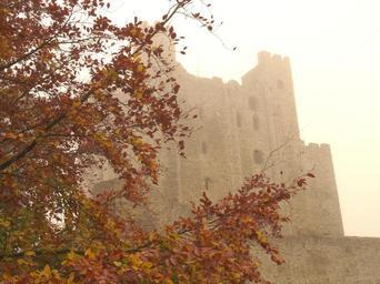 | Keywords: outdoor Rochester Castle stands on the east bank of the River Medway in Rochester, Kent, South East England. The 12th-century keep or stone tower, which is the castle's most prominent feature, is one of the best preserved in England or France. Situated on the River Medway and Watling Street, Rochester served as a strategically important royal castle. During the late medieval period it helped protect England's south-east coast from invasion. The first castle at Rochester was founded in the aftermath of the Norman Conquest. It was given to Bishop Odo, probably by his half-brother William the Conqueror. During the Rebellion of 1088 over the succession to the English throne , Odo supported Robert Curthose, the Conqueror's eldest son, against William Rufus. It was during this conflict that the castle first saw military action; the city and castle were besieged after Odo made Rochester a headquarters for the rebellion. After the garrison capitulated, this first castle was abandoned. Between 1087 and 1089, Rufus asked Gundulf, Bishop of Rochester, to build a new stone castle at Rochester. He established the current extent of the castle. Though much altered through the centuries, some parts of Gundulf's work survive. In 1127 King Henry I granted the castle to the Bishops of Canterbury in perpetuity. William de Corbeil built the massive keep that still dominates the castle today. Throughout the 12th century the castle remained in the custody of the archbishops. During the First Barons' War (1215–1217) in King John's reign, baronial forces captured the castle from Archbishop Stephen Langton and held it against the king, who then besieged it. The Barnwell chronicler remarked "Our age has not known a siege so hard pressed nor so strongly resisted". After resisting for just over seven weeks, the garrison surrendered. Although the castle had been greatly damaged, with breaches in the outer walls and one corner of the keep collapsed, it was hunger that eventually forced the defenders' hand. The castle did not stay under John's control for long: in 1216 it was captured by the French Prince Louis, who was the new leader of the baronial faction. John died and was succeeded by his son King Henry III in 1216; the next year, the war ended and the castle was taken under direct royal control. Rochester was besieged for the third time in 1264 during the Second Barons' War (1264–1267). The castle's royal constable, Roger de Leybourne, held Rochester in support of Henry III. Rebel armies led by Simon de Montfort and Gilbert de Clare entered the city and set about trying to capture the castle. Again the castle's defenders resisted, though this time with a different outcome. After a week, the rebel armies raised the siege in the face of relief from Henry himself. Although the garrison did not surrender, the castle suffered extensive damage that was not repaired until the following century. The castle saw military action for the last time in 1381 when it was captured and ransacked during the Peasants' Revolt. As Rochester Castle fell out of use its materials were reused elsewhere and custodianship relinquished by the Crown. The castle and its grounds were opened to the public in the 1870s as a park. At various points during the 19th and 20th centuries repairs were carried out. The castle is protected as a Grade I listed building and Scheduled Monument. Today the ruins are in the guardianship of English Heritage and open to the public. Rochester Castle stands on the east bank of the River Medway in Rochester, Kent, South East England. The 12th-century keep or stone tower, which is the castle's most prominent feature, is one of the best preserved in England or France. Situated on the River Medway and Watling Street, Rochester served as a strategically important royal castle. During the late medieval period it helped protect England's south-east coast from invasion. The first castle at Rochester was founded in the aftermath of the Norman Conquest. It was given to Bishop Odo, probably by his half-brother William the Conqueror. During the Rebellion of 1088 over the succession to the English throne , Odo supported Robert Curthose, the Conqueror's eldest son, against William Rufus. It was during this conflict that the castle first saw military action; the city and castle were besieged after Odo made Rochester a headquarters for the rebellion. After the garrison capitulated, this first castle was abandoned. Between 1087 and 1089, Rufus asked Gundulf, Bishop of Rochester, to build a new stone castle at Rochester. He established the current extent of the castle. Though much altered through the centuries, some parts of Gundulf's work survive. In 1127 King Henry I granted the castle to the Bishops of Canterbury in perpetuity. William de Corbeil built the massive keep that still dominates the castle today. Throughout the 12th century the castle remained in the custody of the archbishops. During the First Barons' War (1215–1217) in King John's reign, baronial forces captured the castle from Archbishop Stephen Langton and held it against the king, who then besieged it. The Barnwell chronicler remarked "Our age has not known a siege so hard pressed nor so strongly resisted". After resisting for just over seven weeks, the garrison surrendered. Although the castle had been greatly damaged, with breaches in the outer walls and one corner of the keep collapsed, it was hunger that eventually forced the defenders' hand. The castle did not stay under John's control for long: in 1216 it was captured by the French Prince Louis, who was the new leader of the baronial faction. John died and was succeeded by his son King Henry III in 1216; the next year, the war ended and the castle was taken under direct royal control. Rochester was besieged for the third time in 1264 during the Second Barons' War (1264–1267). The castle's royal constable, Roger de Leybourne, held Rochester in support of Henry III. Rebel armies led by Simo