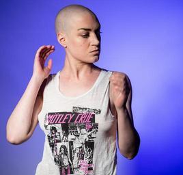 Keywords: rock chick music woman bald rock female performer singer rocker person tattoo attitude performance white clapping hands