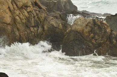 Keywords: rock coast stone sea ocean water branding golf foam splashes wild ferocious white storm wind