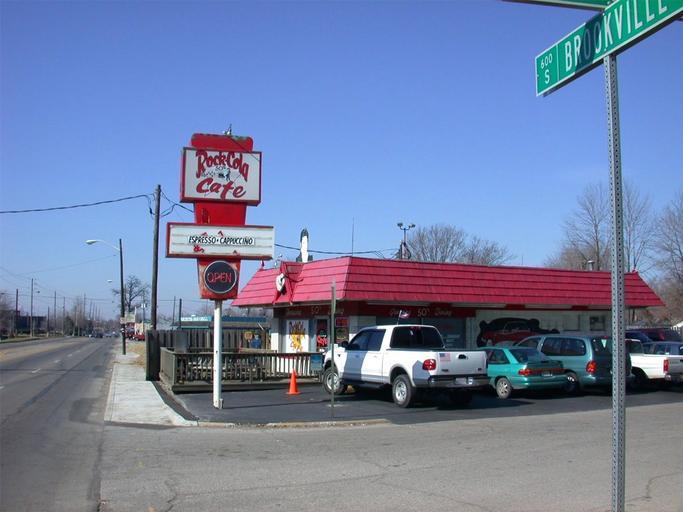 Keywords: Rock-Cola Cafe - Outside.jpg en Rock-Cola 50's Cafe Outside view own Dante51763 2010-07-13 Choc-Ola Cafés in Indiana