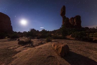 Keywords: rock desert night moonshine full moon moon stars sky universe geology erosion formation sandstone shape balance nature landscape desert landscape stone dry outdoors scenic cosmos
