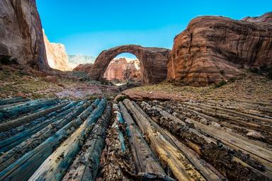 Keywords: rock formation rainbow bridge arch lake powell sandstone logs arizona wilderness landscape nature outdoors travel tourism recreation usa
