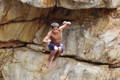 Keywords: rock jump children courageous water river dared courage kleinmond south africa