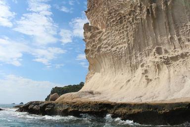 Keywords: rock new zealand sea nature landscape coast holiday steep water schroff travel tourism stone north island rocks green old geology splash boulders natural stones structure steinig whitianga form formation mation