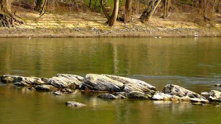 Keywords: rock rhine st goar middle rhine river water rest quiet silent pleasant low tide landscape