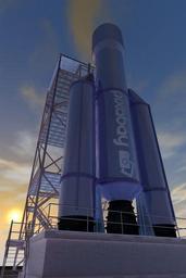 Keywords: rocket launch pad start take off spaceship satellite ariane scaffold stairs sky blue clouds evening sun evening sun back light 3d metal technology