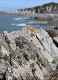 Keywords: rocks sea lichen landscape water sky beach cliff