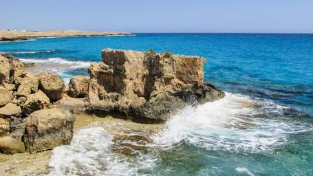 Keywords: rocky coast rock wave smashing foam spray energy water splash sea blue cyprus ayia napa