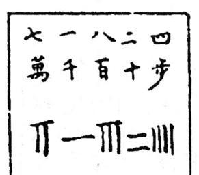Keywords: Rod numeral positioning.JPG en Rod numeral positioning zh-hans 辉算筹布位法 Ming dynasty Yongle Encyclopedia Yang Hui 13th century century 13 Chinese mathematics Yongle Encyclopedia Chinese numerals PD-old