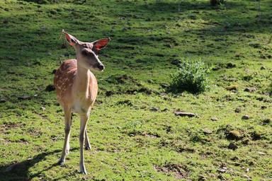 Keywords: roe deer bambi hirsch pasture forest light shadow sun animal grass nature black forest summer wilderness outdoor fur red deer young deer fawn cute scheu wild animals young animal kitz