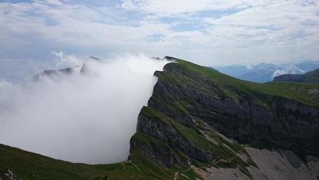 Keywords: rofan mountains tyrol austria alpine landscape karwendel mountains meadow tyrolean alps mountain range mood clouds fog clouds form