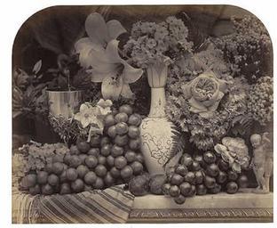 | Keywords: Roger Fenton Fruit and Flowers, 1860 Paul Mellon Fund.jpg en Roger Fenton artist British 1819 - 1869 Fruit and Flowers 1860 albumen print from collodion negative Overall 35 5 x 43 cm 14 x 16 15/16 in mount 50 8 x 68 5 cm 20 x 26 15/16 in Paul Mellon Fund National Gallery of Art Brief Guide In the summer of 1860 Fenton made his most deliberate and exacting photographs to date a series of still lifes Although the subject obviously had its roots in painting his densely packed compositions are far removed from the renditions of everyday life by the Dutch masters Instead Fenton extravagantly piled luscious fruits and intricately patterned flowers on top of one another and pushed them to the front of his composition so that they seem almost ready to tumble out of the photograph into the viewer's space It is that very immediacy ”the precarious composition the lush sensuousness of the objects and our knowledge of their imminent decay ”that makes these photographs so striking cs Roger Fenton artist British 1819 - 1869 Fruit and Flowers 1860 albumen print from collodion negative Overall 35 5 x 43 cm 14 x 16 15/16 in mount 50 8 x 68 5 cm 20 x 26 15/16 in Paul Mellon Fund National Gallery of Art Brief Guide In the summer of 1860 Fenton made his most deliberate and exacting photographs to date a series of still lifes Although the subject obviously had its roots in painting his densely packed compositions are far removed from the renditions of everyday life by the Dutch masters Instead Fenton extravagantly piled luscious fruits and intricately patterned flowers on top of one another and pushed them to the front of his composition so that they seem almost ready to tumble out of the photograph into the viewer's space It is that very immediacy ”the precarious composition the lush sensuousness of the objects and our knowledge of their imminent decay ”that makes these photographs so striking http //www nga gov/fcgi-bin/tinfo_f object 132371 Creator Roger Fenton 1860 PD-old-100 Roger Fenton |