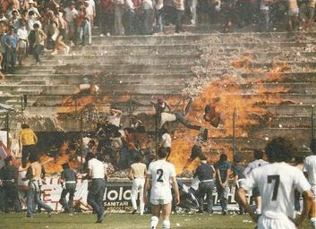 | Keywords: Rogo Ballarin-1.jpg it San Benedetto del Tronto 7 giugno 1981 Rogo del Ballarin le fiamme avanzano inesorabili mentre la gente intrappolata all'interno della Curva Sud cerca disperatamente la salvezza scavalcando la rete di recinzione Riconoscibili sul campo e di spalle i giocatori del Matera Generoso il portiere Casiraghi e Pavese own Luitom 2010 San Benedetto del Tronto |