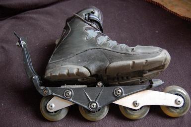 Keywords: Roller chaussure.JPG roller chaussure inline skates by Hypno Skates Italy patented in 1996 this model circa 1998 Boot detachable from the inline frame to allow normal walking Own 2007-01-24 KoS Public Domain Inline skates Photos by KoS