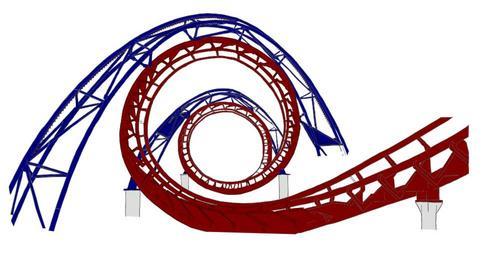 Keywords: roller coaster tube red blue intertwined speed fun