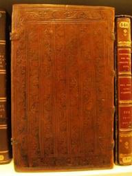 | Keywords: "ROLLES ou memoires des rentes dues au Grand Bailliage de Saint Gilles -les Boucheries, in Languedoc- et autres, 1515;" in two divisions. The first contains lists of tenants paying a money r - Left cover (low resolution) (Add Ms 19693).jpg Style Floral Panel design; Caption Left cover low resolution ; Colour Brown; Edge Unspecified exhibition history Decorative Technique Tooled in blind; Cover Material Goatskin includes morocco turkey etc Traces of 2 clasps Wooden boards FRENCH Leather on wood with blind tooling early 16th cent St Giles les Boucheries Languedoc Rentes dues au Grand Bailliage de 1515 object history Text 16c; France; Unspecified object type Cc-zero place of creation Binding France place of discovery Unspecified British Library image http //www bl uk/catalogues/bookbindings/LargeImage aspx RecordId 020-000018088 ImageId ImageId 56896 Copyright BL ROLLES ou memoires des rentes dues au Grand Bailliage de Saint Gilles les Boucheries in Languedoc et autres 1515; in two divisions The first contains lists of tenants paying a money rent; the second at fol 25 contains a declaration of rents in wheat due to the Chevalier Françoys de Saint Amadour Uploaded with GWToolset ROLLES ou memoires des rentes dues au Grand Bailliage de Saint Gilles les Boucheries in Languedoc et autres 1515; in two divisions The first contains lists of tenants paying a money r - Left cover low resolution Add Ms 19693 http //www webarchive org uk/bldatasets/bindings/Add19693 jpg Bookbinding 16th-century bookbinding British Library Bookbindings |