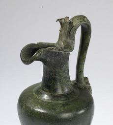 | Keywords: Roman - Beaked Pitcher - Walters 54947 - Detail A.jpg This oinochoe a pitcher for serving wine or water has the head of Eros the child-god of love also known to the Romans as Cupid at the base of the handle A griffin overlooks the spout century 1 cast bronze silver inlay cm 21 10 8 10 2 h x w x diam accession number 54 947 15942 Henry Walters Baltimore date and mode of acquisition unknown Walters Art Museum Henry Walters Acquired by Henry Walters place of origin Samsun in present-day Turkey Walters Art Museum license Ancient Roman art in the Walters Art Museum Media contributed by the Walters Art Museum needs category review |