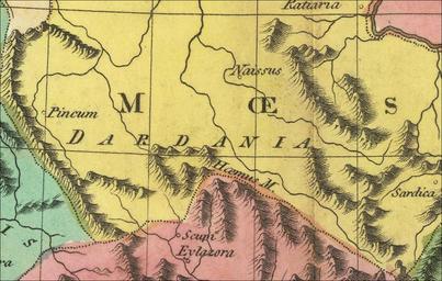 | Keywords: Roman Dardania part of Moesia Superior part of old map made 1820.jpg Dardania inside the Roman province of Moesia Superior part of Old historical map from 1820 Geographical and Statistical Map of Ancient Greece Ancient Greece including Part of Asia Minor Epirus Macedonia Thrace Illyria Moesia Pannonia and Dacia For the Elucidation of Lavoisne's Geneological and Historical Atlas by C Gros 1820 No 14 Philadelphia Published by M Carey Son 2010-02-28 C Gros PD-old 19th-century maps of the Balkans Moesia Superior Inferior Maps of the history of Kosovo in ancient times 1820 maps |