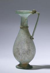 | Keywords: Roman - Jug with Composite Handle - Walters 47411 - Right.jpg This type of jug was used to hold wine or water at the dinner table Made of free-blown glass this example is composed of a green-toned slightly iridescent glass and is decorated with a thread around the neck and another around the mouth made by trailing molten glass around the vessel when it was still hot century 4 5 Late Antique blown glass cm 18 7 2 ; at handle cm 7 75 w accession number 47 411 33564 Judge and Mrs Herbert M Moser Baltimore Walters Art Museum Gift of Judge and Mrs Herman M Moser 1956 3000 Years of Glass Treasures from The Walters Art Gallery The Walters Art Gallery Baltimore 1982 place of origin east Mediterranean Walters Art Museum license Ancient Roman glassware in the Walters Art Museum 4th-century art in the United States Glass 5th-century art in the United States Glass Jugs 5th-century glassware 4th-century glassware |