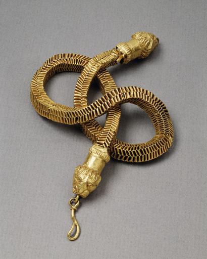 | Keywords: Roman - Necklace with Lion's-Head Closures - Walters 57588.jpg This necklace has a folded gold foil chain century 4 Late Antique gold cm 1 4 41 5 d x l length when clasped cm 18 5 accession number 57 588 324 Auguste Salzmann by purchase at Macri ancient Telmossos Lycia Turkey Tyskiewicz Sale Rollin et Feuardent Paris June 9-10 1898 p 65 no 176 plate XXI Henry Walters Baltimore date of acquisition unknown by purchase Walters Art Museum Henry Walters Acquired by Henry Walters Jewelry - Ancient to Modern The Walters Art Gallery Baltimore 1979-1980 place of origin Roman Empire Walters Art Museum license Ancient Roman art in the Walters Art Museum Jewellery in the Walters Art Museum Ancient Roman necklaces Lion heads in art |