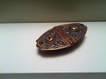 | Keywords: Romanesque Treasure of MNAC- Naveta de Besalú.jpg El recorregut de la secció de romà nic culmina amb els objectes d ™orfebreria que constituïen els tresors de les esglésies medievals Aquests objectes tenien una funció litúrgica però a la vegada formaven el patrimoni material dels temples el seu sistema d ™acumulació de riquesa Les vitrines mostren una selecció de peces d ™Ã¨poques diverses del fons d ™orfebreria romà nica del Museu Dues es dediquen a l ™anomenada obra de Llemotges la cèlebre producció d ™objectes de coure esmaltats amb centre en aquesta ciutat del nord d ™Occità nia The Romanesque tour in MNAC culminates with objects of gold which are the treasures of medieval churches These objects have a liturgical function but once formed the material heritage of temples their system accumulation of wealth Showcases a selection of pieces from different periods of the fund of silver Roman Museum Two are dedicated to the work of so-called Limoges famous for producing objects with enameled copper center This northern city of Aquitaine Institution Museu Nacional d'Art de Catalunya 2012-10-25 11 40 47 own PD-Art Romanesque Treasure in the MNAC |