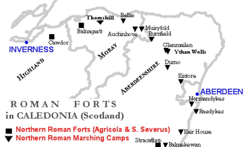 | Keywords: RomanFortsNorthernScotland.gif en Map of Northern Caledonia Scotland showing Roman Forts and Marching Camps little forts during the Agricola Campaign first century and the Septimius Severus Campaign third century Map and data done with my own software Own Paul0559 2009-07 History of Scotland Ancient Roman forts in Scotland Maps of Roman Britain |