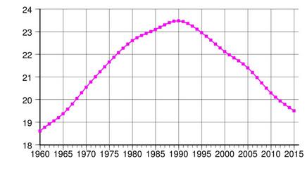 | Keywords: Romania population.svg en Romania population 1960-2015 From UN estimates World Population Prospects http //esa un org/unpd/wpp/Excel-Data/population htm The 2015 Revision<br/>Y-axis Number of inhabitants in millions 2016-02-13 own Delphi234 other versions Generated with Wikimedia SVG Chart SVG Chart/box cc-zero Demographics of Romania Temporal population graphs Diagrams labelled with numbers only | ||||
