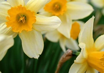 Keywords: daffodil spring narcissus green bed blooming petal flower yellow leaf growing springtime flora stem easter nature flowerbed