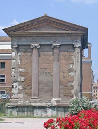 Keywords: RomaTempioPortunoRetro.JPG Roma tempio del dio Portuno conosciuto come tempio della Fortuna Virile nel Foro Boario Facciata posteriore Foto personale maggio 2005 by MM in it wiki Temple of Portunus Rome