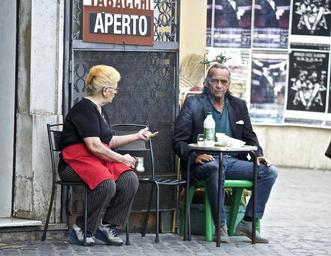 Keywords: rome italy cafe outdoors people talking street