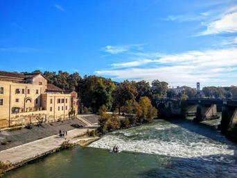 Keywords: rome italy water city on the road tourism old stone house building blue sky clouds river tiber