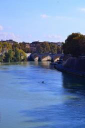 Keywords: rome tiber bridge river summer day greens boat the boatman landscape