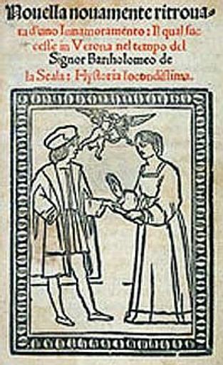 Keywords: Romeo e Giulietta Da porto.jpg de Die Titelseite der Originalfassung von Romeo und Giulietta 1530 http //www entetutelapesca it/pages/romeo_giulietta_en htm author PD-old-100 Romeo and Juliet 1530 books Luigi da Porto