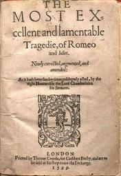 | Keywords: Romeo and Juliet Q2 Title Page-2.jpg William Shakespeare's play Romeo and Juliet printed by Thomas Creede in 1599 Romeo_and_Juliet_Q2_Title_Page jpg 2008-11-08 21 52 UTC derivative work Tadpole9 <span class signature-talk >talk</span> Romeo_and_Juliet_Q2_Title_Page jpg Thomas Creede 1599 cropped rotated adjusted perspective and adjusted brightness/contrast using the w GIMP Tadpole9 Romeo_and_Juliet_Q2_Title_Page jpg PD-old-100 original upload log This image is a derivative work of the following images Image Romeo_and_Juliet_Q2_Title_Page jpg licensed with PD-old 2008-08-22T20 56 03Z Xover 656x955 264897 Bytes <nowiki> William Shakespeare's play Romeo and Juliet printed by in 1599 Source</nowiki> Uploaded with derivativeFX Romeo and Juliet |