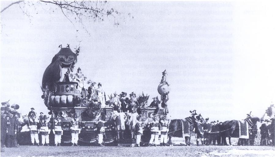 | Keywords: RoMo5.jpg Der Prinzenwagen des Rosenmontagszuges 1886 entworfen von dem Bildhauer Anton Scholl Le char du Prince Carnaval lors du défilé de 1886 conçu par le sculpteur Anton Scholl Scan aus Friedrich Schütz Die moderne Mainzer Fastnacht in Franz Dumont Ferdinand Scherf Friedrich Schütz Hrsg Mainz “ Die Geschichte der Stadt zeitgenössische Photographie scan upload Martin Bahmann s u PD-old 1886 photographs Mainzer Fastnacht Horses in carnivals | ||||