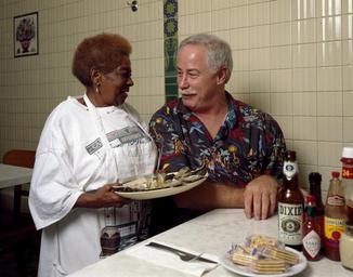 | Keywords: Ronnie Virgets Alma Griffin Casamentos New Orleans by Highsmith.jpg New Orleans writer and television personality Ronnie Virgets is served the house specialty ice-cold oysters on the half shell by Alma Griffin at Casamento's Seafood Restaurant in Uptown New Orleans Louisiana Photo by Carol Highsmith via Library of Congress website http //www loc gov/pictures/item/2011634555/ c-1996-2006 Creator Carol M Highsmith PD-Highsmith People of New Orleans Virgets Casamento's Restaurant New Orleans Oyster dishes New Orleans in the early 2000s |