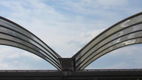Keywords: roof arches glass construction roof construction architecture building elegant sky clouds wing shiny smooth mirroring reflection
