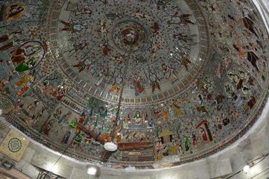 Keywords: roof architecture buildings structures round circular spacious interior designs patterns artistic vintage ancient historic ethnic temples ramayana paintings silvery shiny shining grey gray shine glossy surfaces construction