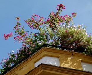 Keywords: roof rooftop architecture house decoration flowers garden outside sky clouds