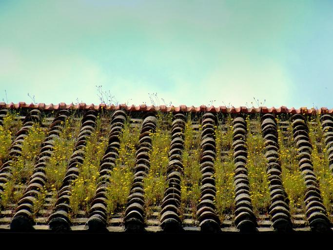 Keywords: roof tile house roofing home construction building architecture rooftop sky top structure texture cover plant green