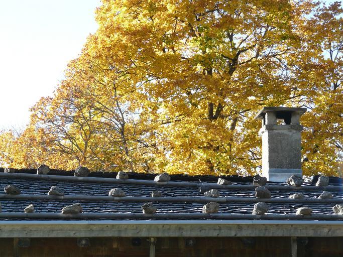Keywords: roof wooden roof wood stones alm alpine home fireplace chimney ballast hut autumn autumn motive shingle wood shingle shingle roof