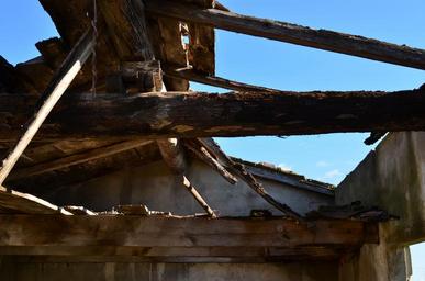 Keywords: roofing blue sky old houses old stone walls old building stones
