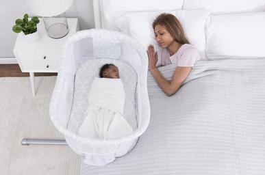 | Keywords: sleep baby sleeping parenting crib safety safe breastfeeding nappss infant indoor Baby is sleeping on her back in a separate sleep space within arm’s reach of Mom. Baby's sleep space is empty of blankets, bumpers and toys. When Mom brings baby to bed to breastfeed, she needs to remove pillows, sheets, blankets, and any other item that could block infant breathing if she should fall asleep. Learn more about creating a safe sleep environment to reduce the risk of SIDS and other sleep-related causes of infant death at safetosleep.nichd.nih.gov Photo generously donated by HALO. [160309_DamaskBassinest-353.jpg] Baby is sleeping on her back in a separate sleep space within arm’s reach of Mom. Baby's sleep space is empty of blankets, bumpers and toys. When Mom brings baby to bed to breastfeed, she needs to remove pillows, sheets, blankets, and any other item that could block infant breathing if she should fall asleep. Learn more about creating a safe sleep environment to reduce the risk of SIDS and other sleep-related causes of infant death at safetosleep.nichd.nih.gov Photo generously donated by HALO. [160309_DamaskBassinest-353.jpg] |