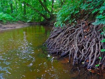 Keywords: root forest river bach bank riverside brook jungle tree tree root erosion