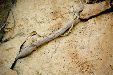 Keywords: root rock grow crack column crevice force blow up nature red sandstone tree karg survive alive resistance steadfastness wood sand stone live